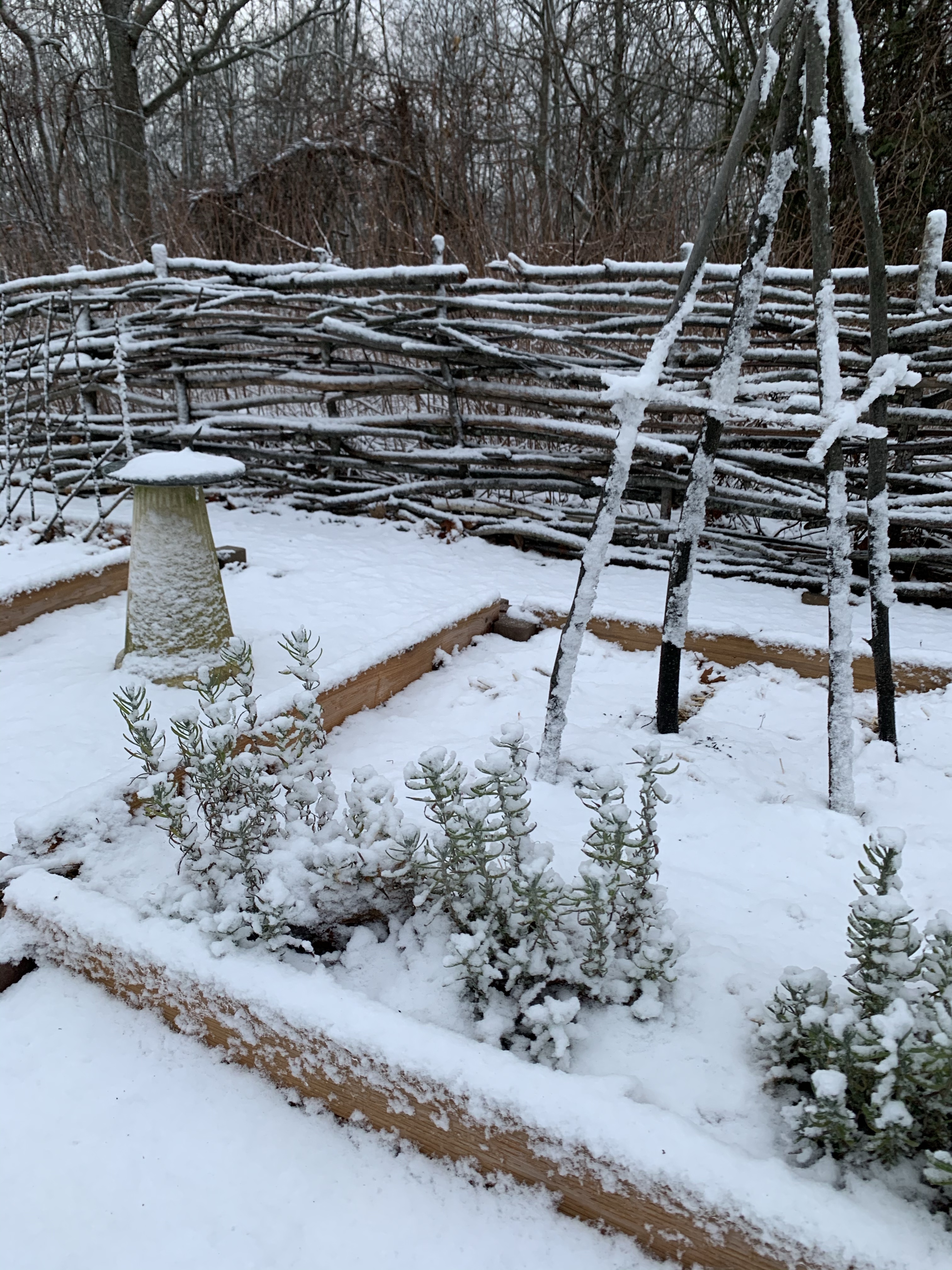 I put off the end of season chores as long as possible…where had the summer gone?? Well into October and November, I was still creating new garden spaces for next spring, planting bulbs, and weaving wattle fences. My poor husband continued his endless battles with the practical needs of the homestead- cutting firewood, constantly mending the nightmare driveway, working with my Dad to replace and add to the insulation above the dormers. Finally, I had to accept the inevitable and put the gardens to bed. The outdoor furniture was covered, and the porch swept one last time. Once again, it was time to turn my thoughts towards the holidays and the return of…